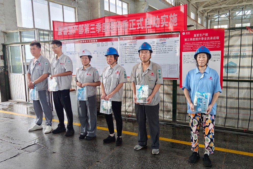 政企同心,其利斷金。宏泰必將把同和街道辦事處的支持轉(zhuǎn)化為發(fā)展動力,在做好防暑降溫、保障員工健康安全的前提下,組織員工以更飽滿的熱情、更昂揚的斗志,安全高效地投入生產(chǎn),為地方經(jīng)濟高質(zhì)量發(fā)展貢獻宏泰力量。