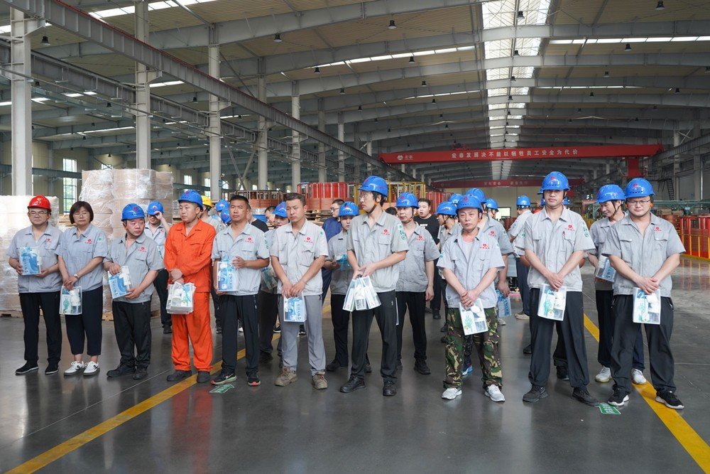大暑至,萬物榮華。值此全年最熱時節(jié),同和街道辦事處心系企業(yè)、情牽職工,為宏泰公司一線員工送來了滿載關(guān)懷的“防暑降溫禮包”——不僅包含清涼甘泉,還有實用的解暑套裝。這份“清涼+守護”的雙重保障,已由宏泰公司高效組織,按照人人享有,獎勵先進的方式精準(zhǔn)送達到員工手中。
